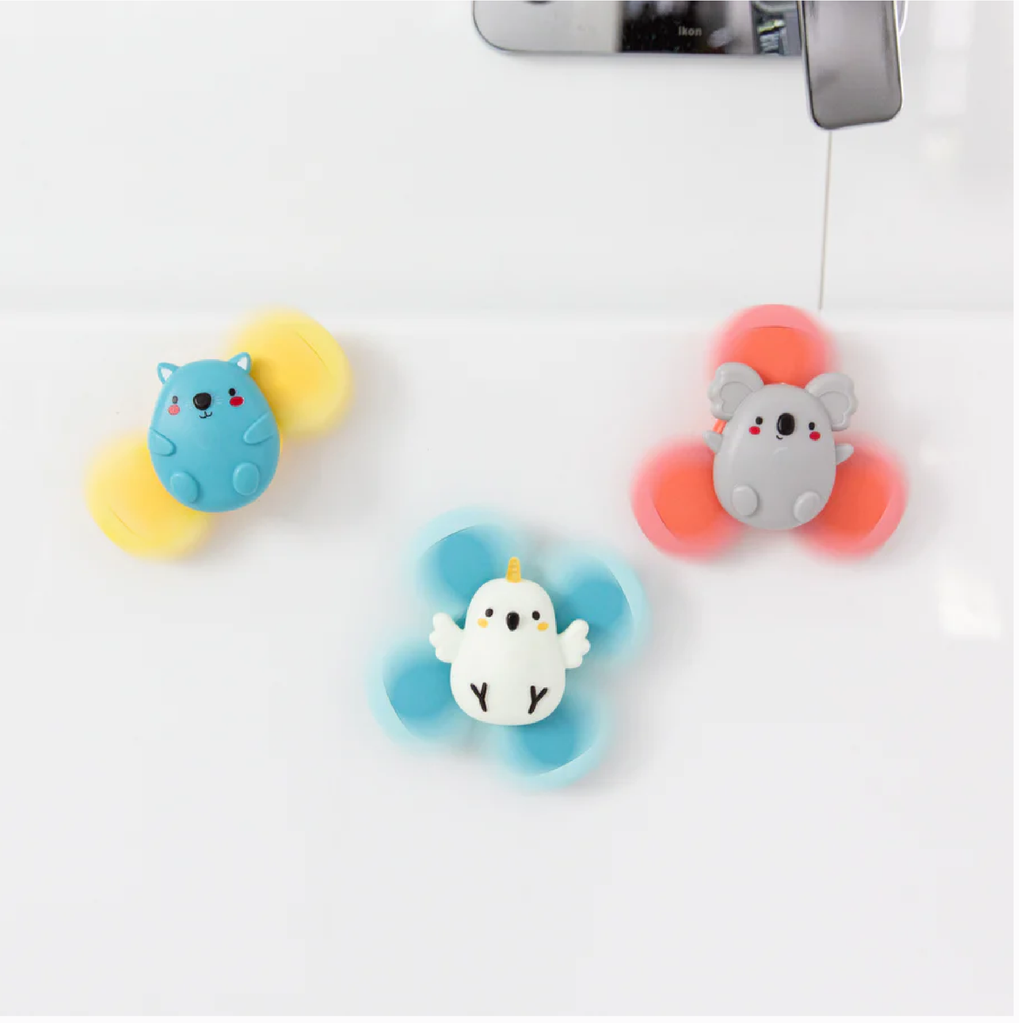 Includes 3 x Aussie Animal Spinners (Cockatoo, Koala and Wombat), each with a two, three or four paddle spinner
