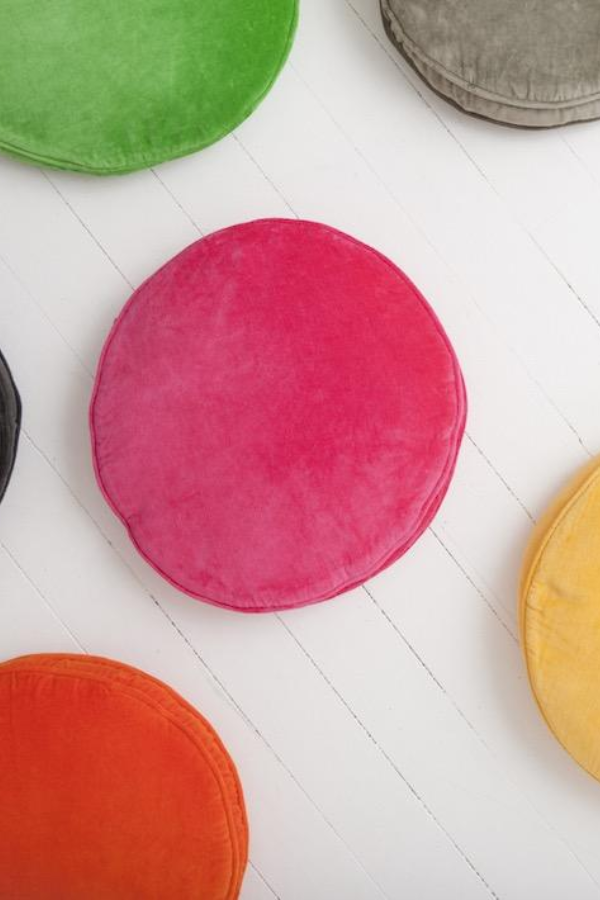 CASTLE Penny Round Cushion - Hot Pink Velvet