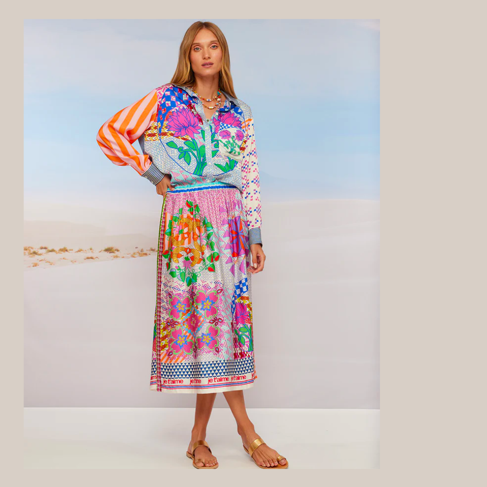 Me369 is a fast-growing brand with a cult following. They're all about embracing creativity and celebrating individuality through statement pieces in unique, feel-good prints. Their collection includes elastic waist skirts, collared shirts, relaxed wide-leg pants, and effortless, breezy dresses that are perfect for creating chic and fun summer looks.