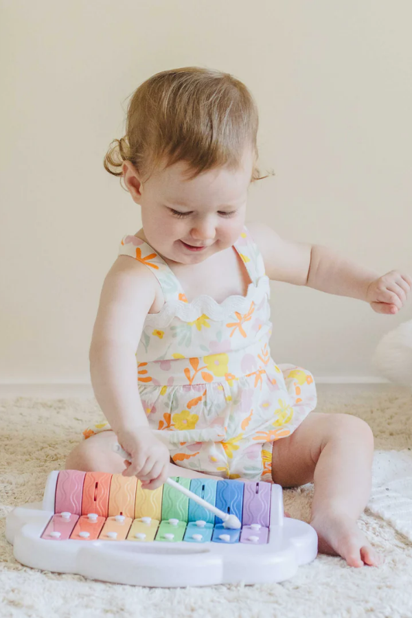 In a sweet cloud and rainbow design, this melodious multi-play instrument is the perfect introduction to music-making for little learners.